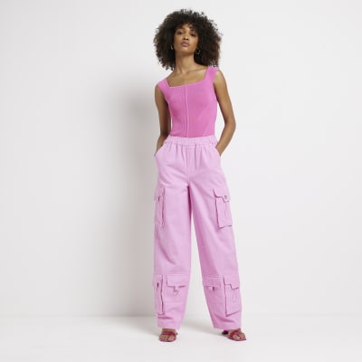 Light Pink Oversized Straight Leg Two Side Pockets Cargo Trousers Ella Femme Luxe Uk 2022